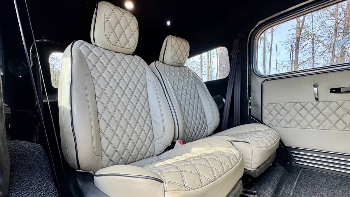 A cabine também possui comodidades como controle de temperatura Vintage Air, vidros elétricos, controle de cruzeiro e sistema de segurança Viper com partida remota. Uma porta traseira elétrica também está no menu para um acesso perfeito ao porta-malas.